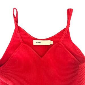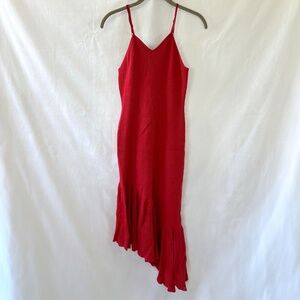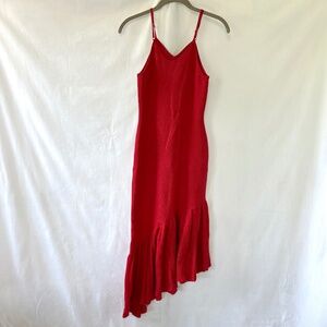 Knitted asymmetrical hem dress with adjustable spaghetti straps. Very flattering. Excellent condition.