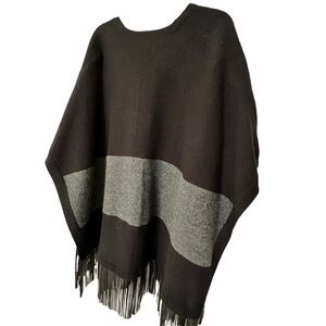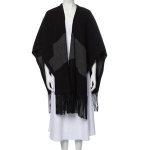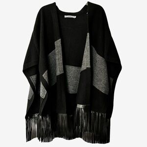 Wool Open Front Oversized Armless Boho Cape Poncho Sweater with Fringe Bottom S