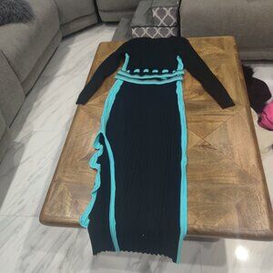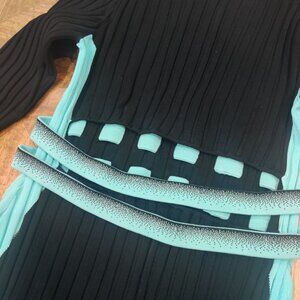 Long sleeve pleated ribbed dress in sustainably sourced yarns