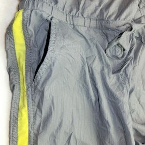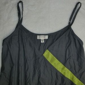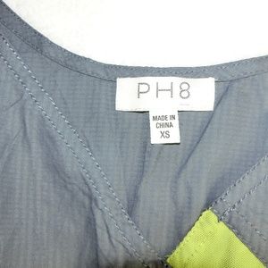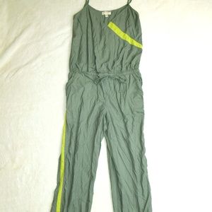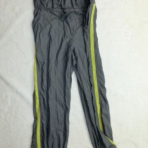 This sale is for a PH8 (Bebe Sport) grey and neon yellow jumpsuit with adjustable straps and drawstring waist. The legs taper off at ankle, which are elastic ankle cuffs. The neon yellow cutouts are mesh/netting. Lightweight and super comfortable fabric.