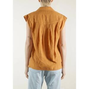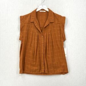 ROAH COLLECTION Audrey Band Sleeve Shirt Womens Small Gossamer Check Rust Cotton NEW