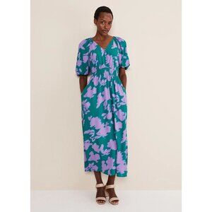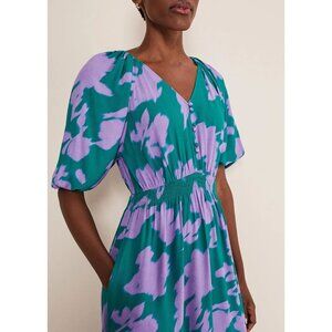 Our Pippa dress goes hand-in-hand with sunny days out. Designed in a vibrant purple and turquoise abstract print, our dress features a feminine V-neckline, fabric-covered buttons and an elasticated waistband for ease of wear. It's perfect with sandals and sunglasses during the warm summer months.