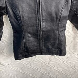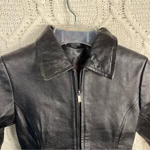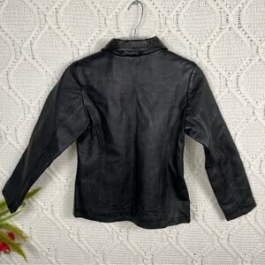 PHASE TWO Black 90s Leather Zip Up Collard Jacket Girl's 10-12 Vintage Classic