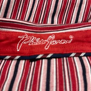 PHAT FARM VINTAGE 90s Y2K RED WHITE AND NAVY BLUE STRIPE LONG SLEEVE BUTTON DOWN SHIRT. 3XL