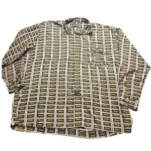 PHAT FARM Vintage Shirt 90s Navy Yellow Signature Logo L/S Button Mens XXXL 3XL