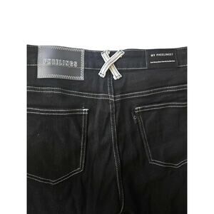 The "Pheelings - Connecting Souls" Flare Stack Denim embroidery in black is a unique and stylish pair of men's jeans in size 34. This flared style adds a trendy twist to the classic denim fabric, reflecting the brand's intention to "connect souls" with their fashion choices. The black color adds a modern touch to the overall look, making it a versatile and statement piece in any man's wardrobe.