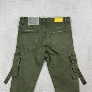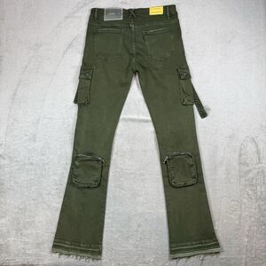 PHEELINGS Jeans Men 34 Green Denim Cargo Stack Zip Pockets Streetwear