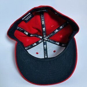 The product is a brand new 2025 Philadelphia Phillies spring training New Era 59Fifty fitted hat in red. It is specifically designed for men and features the iconic Philadelphia Phillies team logo. This MLB baseball cap is in size 7 3/8 and is a must-have for any fan of the Philadelphia Phillies looking to represent their favorite team in style. The hat is a high-quality product from a trusted brand known for its sports apparel.