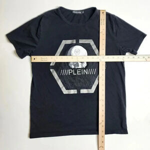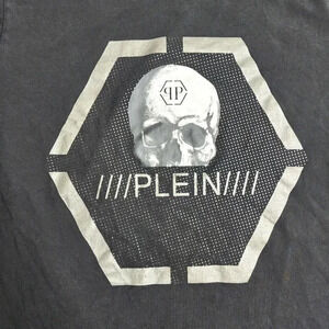 PHILIPP PLEIN Platinum Cut Round Neck Skull Shirt Men's Size Small