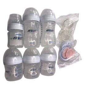 PHILIPS AVENT Natural Latch On Bottles, Set of 5 Bottles with Lids, Nipples.