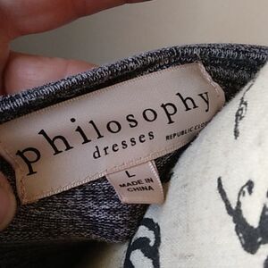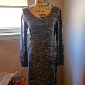 PHILOSOPHY BLACK & WHITE MARLED V-NECK LONG SLEEVE MAXI DRESS LARGE