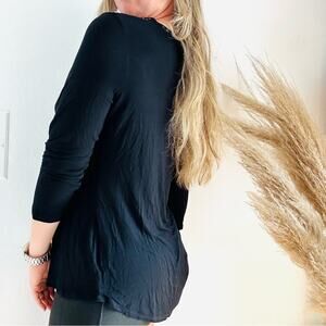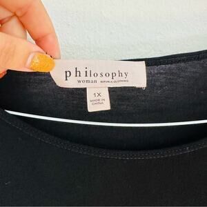 PHILOSOPHY Black Silver Beaded Sequin Shoulder 3/4 Shirt Tunic Top Blouse 1X