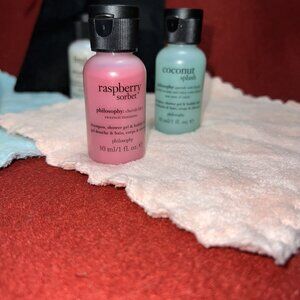 PHILOSOPHY BATH KIT. 5 pc New w/o Tags. All are 1oz sizes and can be used as Shampoo, Shower Gel or Bubble Bath per description. I have too much in storage to not share. This total package is worth $30.00. Please look at all photos as they are part of the description.