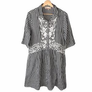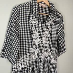 PHILOSOPHY Gingham Embroidered Dress With Pockets Medium Black and White