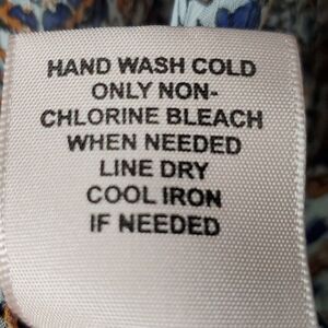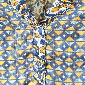 Sheer flowy fabric with paisley and diamond patterns in shades of navy blue and brown. Pre-owned in very good proximate flat-lay measurements: