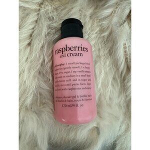 Indulge in the luxurious scent of raspberries and cream with this versatile Philosophy 4 oz product, perfect for use as a shampoo, shower gel, or bubble bath. Ideal for gifting or personal pampering.