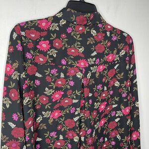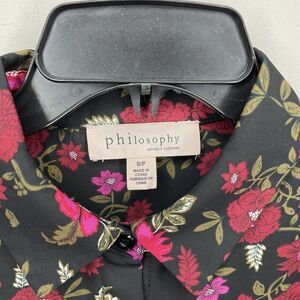 PHILOSOPHY Top Womens Small Black Red Floral Long Sleeve Button Front Blouse