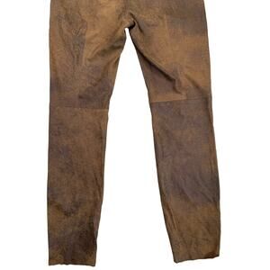 PHILOSOPHY Women's Faux Suede Pants Size 6 Straight Leg Mid-Rise Marble Brown