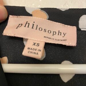 PHILOSOPHY black print Sheer Flowy Blouse Top cuffed sleeves XS
