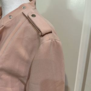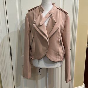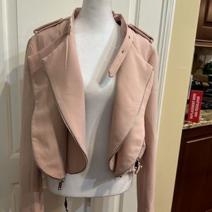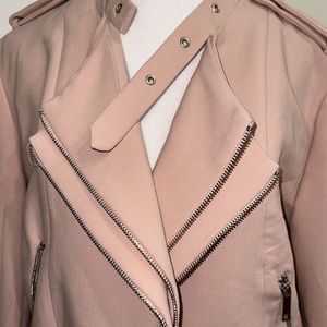 PHILOSOPHY STYLE MOTO JACKET , Sz 10 DUSTY ROSE , light pink, jacket with double zippers, the zipper is purely cosmetic , doesn't zip up. Super cute and be worn as a blazer with skirt, dress or casual with jeans. Or leggings Well made , chest is lined however lining I. Sleeves have been cut ou! Please let me know if you have any questions