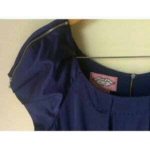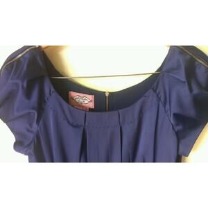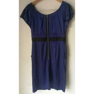 PHOEBE COUTURE Deep Blue Zip Trim Waist Pleated Dress Sz 4