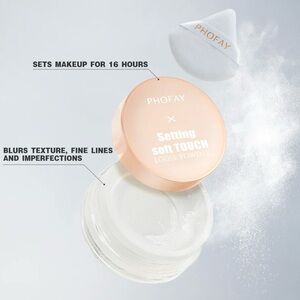 PHOFAY Setting Soft Touch Loose Powder in a sleek design. Includes applicator for easy use.