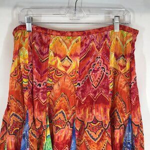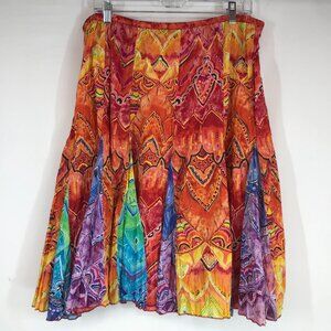 PHOOL- WOMEN'S XL- MULTICOLOR ELASTIC WAIST BOHO FIT & FLARE ART TO WEAR SKIRT