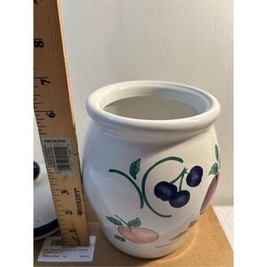 PH Princess House Orchard Medley Fruit canister medium 4” diameter. 6" tall. minor scuffs. good used condition.