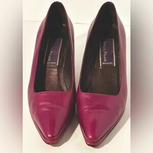 PHYLLIS POLAND 90’s DESIGNER BURGUNDY PINK PUMPS Stunning Snake Heels Edges 8B