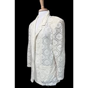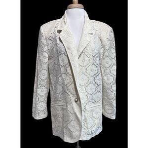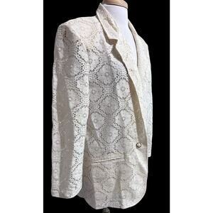 PI LA Blazer Lace Eyelet Crochet Dressy Jacket Blazer Cottagecore Women's L