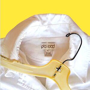 Gently used vintage condition. Inner collar very slightly yellowed. I only see it in bright sunlight, and as you see, it doesn't show up in photos. The center of its hanger yellowed with age, and some of the color must have transferred.