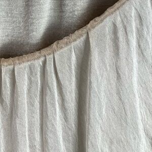 Beautiful 100% silk, sheer overlay blouse. This blouse is in good previously owned condition. There are some runs and tatters in the silk, please see pictures for details. But it is still a beautiful made in Italy silk blouse.