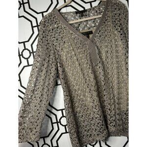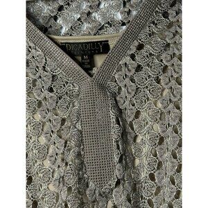 PICADILLY FASHIONS Silver Knit Sweater Top Womens M | Long Sleeve Swim Cover-Up