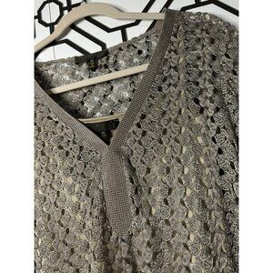 Tags: #PicadillyFashions #SilverKnit #SwimCoverUp #ResortWear #MetallicTop #VNeckSweater #LongSleeveTop #WomensFashion #SizeMedium