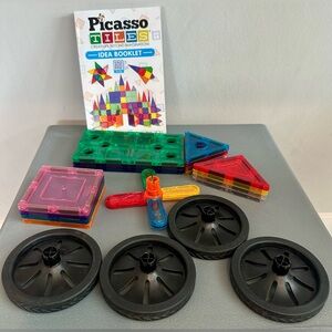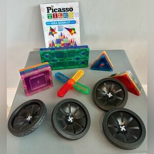 Picasso Tiles' 20-piece magnetic building blocks includes 4 detachable oversized wheels and a unique expandable windmill, empowering kids to go on a thrilling construction adventure filled with imagination and wonder.