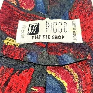 PICCO 100% Silk Red Blue Black Geometric Artsy Men's Tie