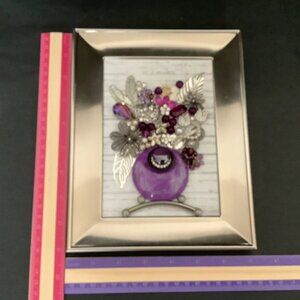 PICTURE FRAME With Bouquet Flowers Pewter Frame Purple Silver Flowers 5x7