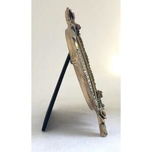 The frame is in new, unused condition with a glass cover and rear picture insertion. It has all rhinestones present and no tarnish or wear. No original box included. A stunning accent for any vintage vanity, dresser, or elegant home décor.