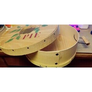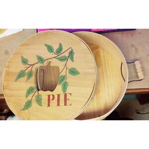 This charming pie holder/carrier is the perfect addition to any farmhouse-style kitchen. The round, hand-painted design features a sturdy bentwood box with a lid and two handles for easy carrying. Measuring 11 inches in diameter, it's the perfect size for storing and displaying your favorite pies.