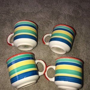 PIER 1 Imports Hand Painted Striped Coffee Tea Cup Mug Made in Italy Set (4)