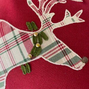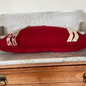 PIER 1 Reindeer Antler Wreath Applique Fringe Lumbar Pillow Red Rectangle