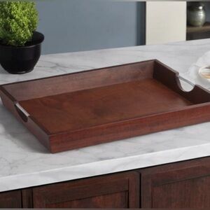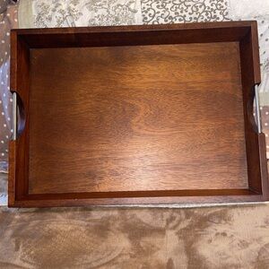 🏡PIER 1 WOODEN SILVER HANDLED TRAY