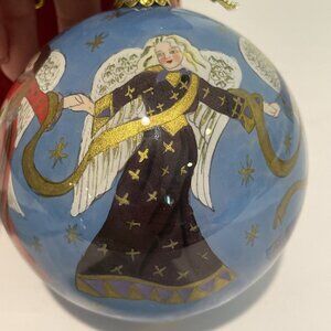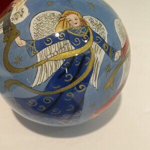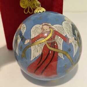 PIER ONE 2001 LI BIEN Reverse Hand Painted Christmas Ornament Angels 3.5" w/ Box