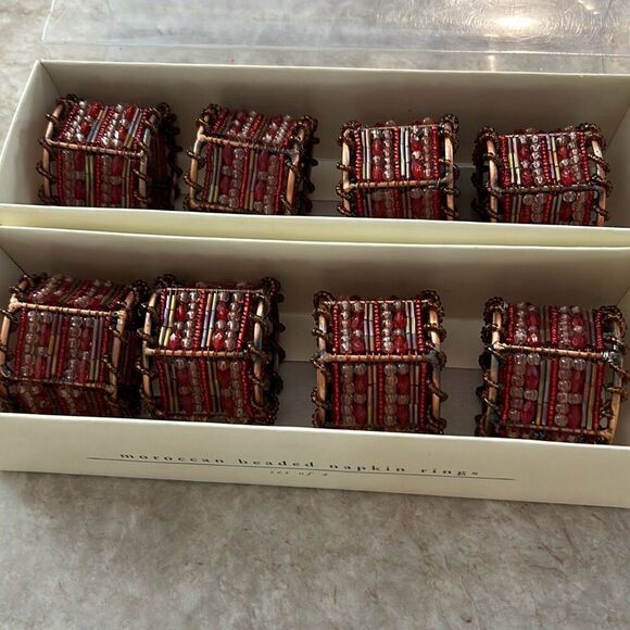 Set of 8 beaded Moroccan napkin rings. In original boxes. Great condition.