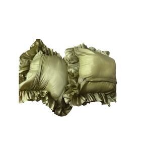 PIER ONE Satin Square Ruffle 16"Sage Green Pillow (2) Luxurious Soft Zip Back