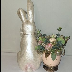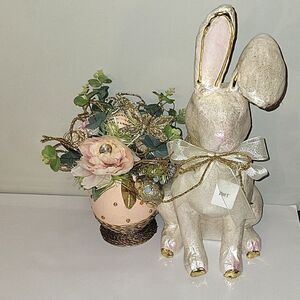 PIER1 EASTER IVORY CAPIZ FLORAL BUTTERFLY EGG GLAMOUR BUNNY CENTERPIECE