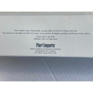 2 Sets with 4 napkin rings in each. One Set is in Box and the other set is open. Please see the photos as part of the description. All sales are final. We do bundling and please take a look into the other pier1 items in my closet that you can coordinate this with. Thank You!