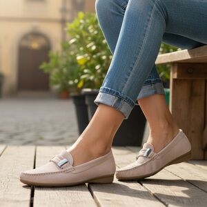 PIERO MASETTI Kiowa Blush Pink Suede Moc Driving Loafers Women's Size 9.5/EU40