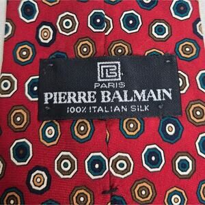 PIERRE BALMAIN Paris Red with Geometric Pattern Italian Silk Classic Tie