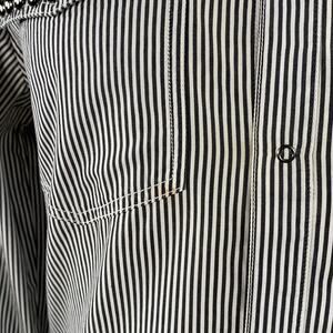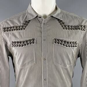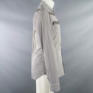PIERRE BALMAIN Size M Silver Black White Stripe Studded Cotton Long Sleeve Shirt